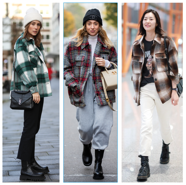 Brushed plaid “shackets”—a hybrid of shirt and jacket—are among the current fashion trends that can be worn anywhere, any time. Heavier than a flannel shirt but not quite as bulky as a full-on coat, they’re perfect if you need to run out. They also look great with most things you’re already wearing, from sweatpants to turtlenecks.